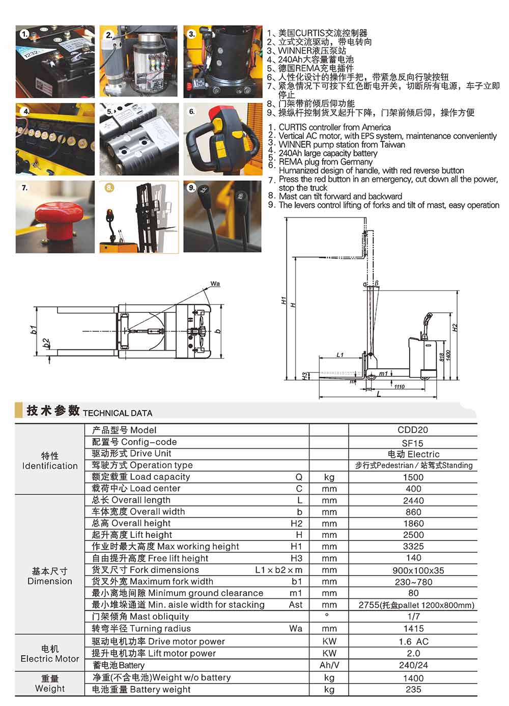 CDDSF平衡重電動(dòng)堆垛車(新款,帶電轉(zhuǎn)向)
